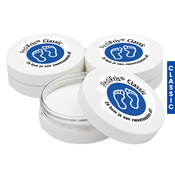 Gracias a su acción múltiple, PediFris Classic a menudo se considera el remedio drástico contra Zweetvoeten. Ofrece un enfoque amplio que no solo combate el sudor y el olor, sino que también previene problemas en los pies como el pie de atleta y la onicomicosis. Esta versatilidad lo convierte en un producto indispensable para el cuidado serio de los pies.